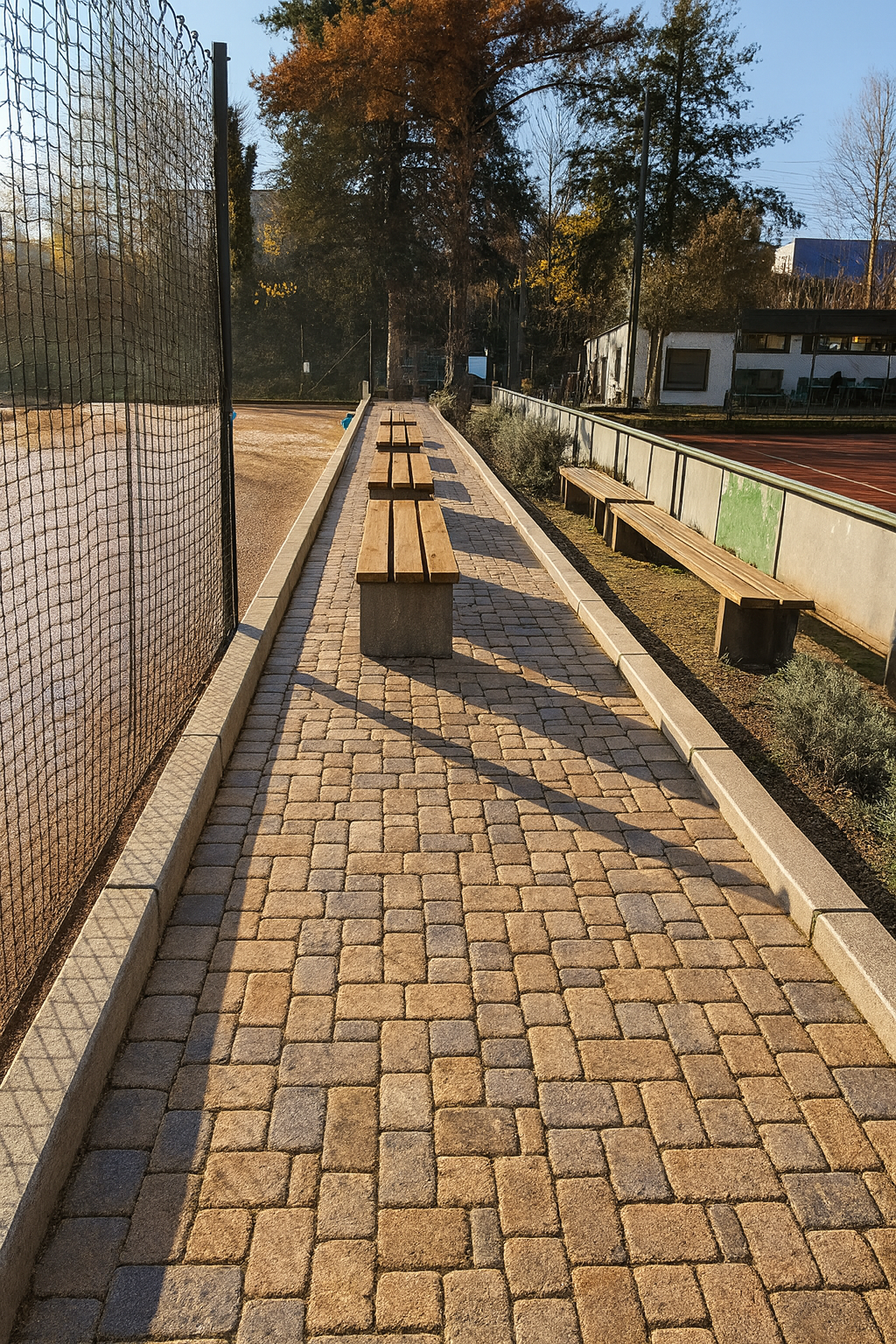 Darüber hinaus können wir dank der Förderung auch die Wegeführung auf der Anlage verbessern. Die wassergebundene Wegedecke im Mittelgang der Plätze wird instandgesetzt und um einen neuen Pflasterweg zwischen den Plätzen 1 und 3 ergänzt. Dadurch entstehen saubere, trittsichere und zum Teil barriereärmere Wege zwischen Plätzen, Halle und Parkplatz – ein Gewinn für alle, die sich täglich auf der Anlage bewegen.