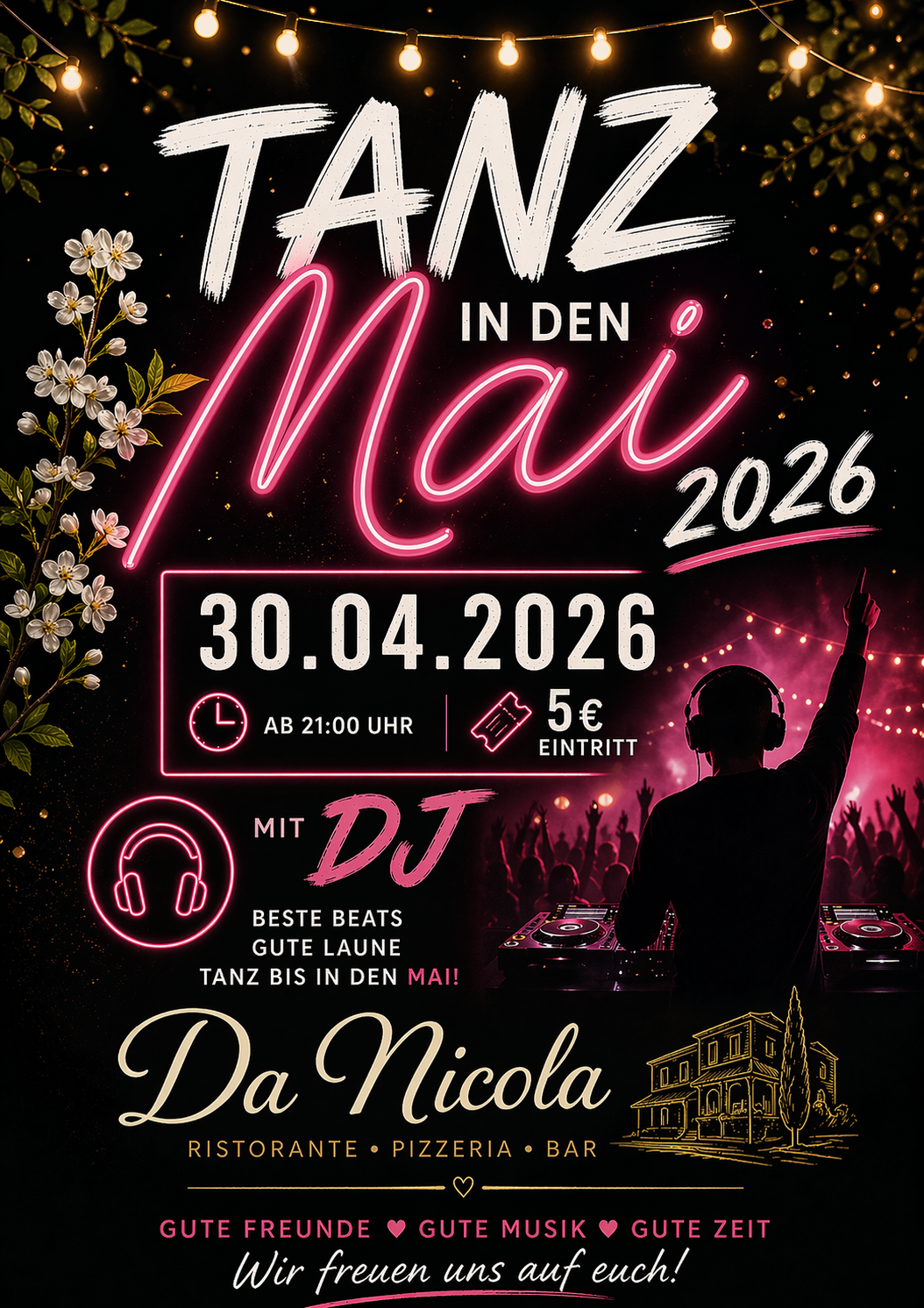 Am 30.04.2026 ab 21:00 Uhr im Clubhaus Da Nicola.
